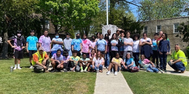 Every year, Ms. Vannais, the Science teacher, organizes the 7th grade to celebrate Earth Day by cleaning up the areas of the borough and memorial in Woodlynne. They weed, trash collect and recycle.